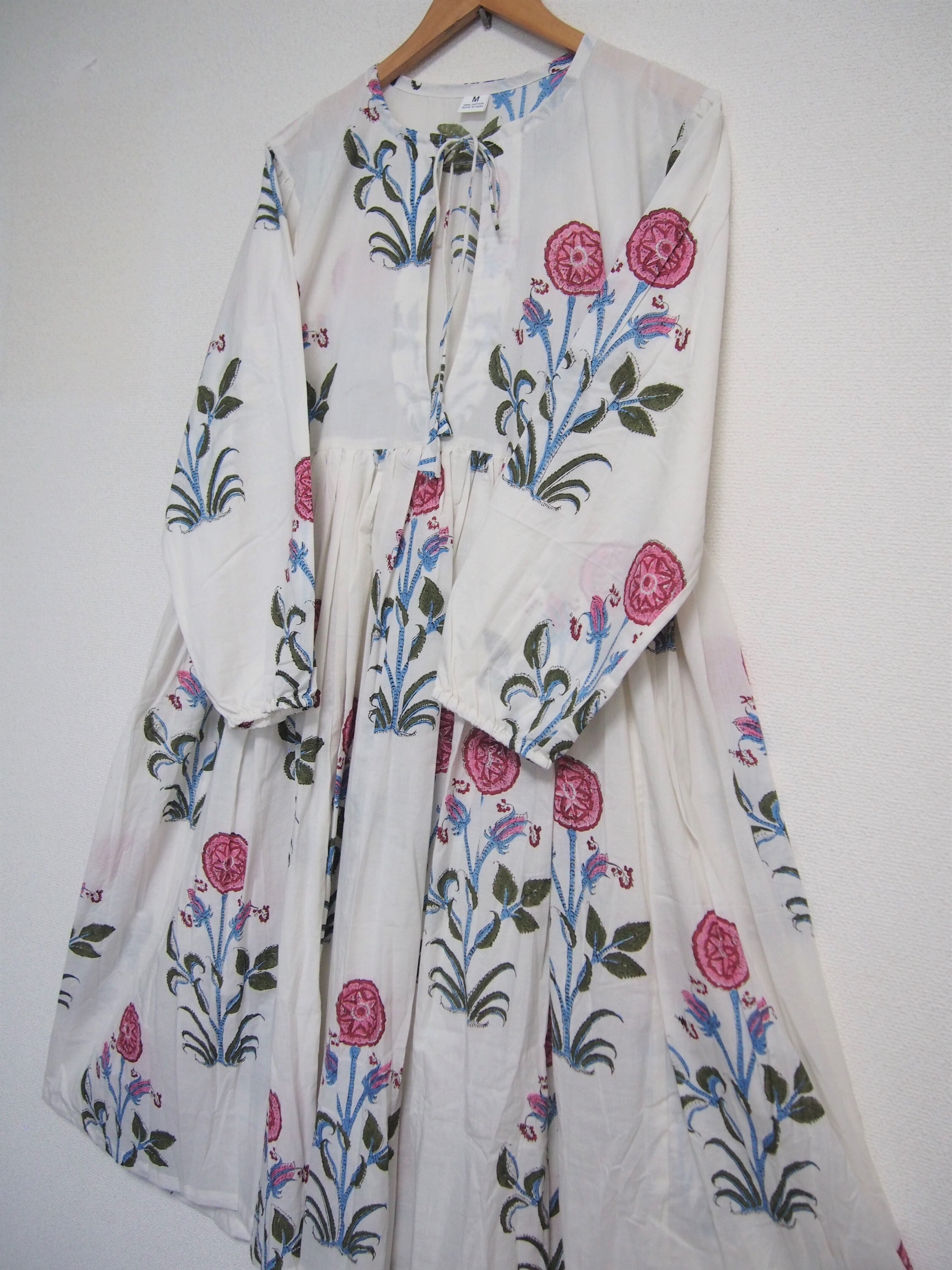 インドの伝統工芸であるハンドブロックプリントで作られたワンピースです。