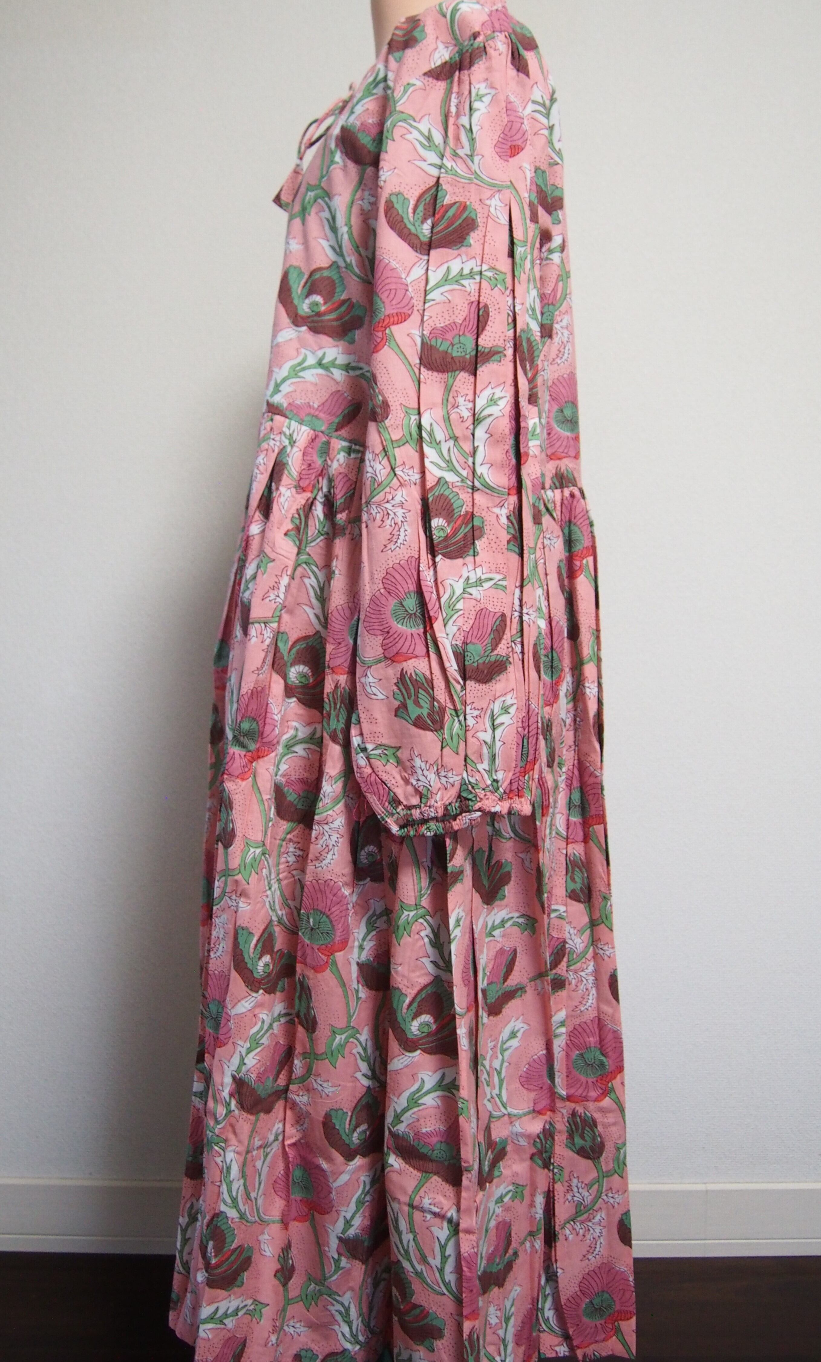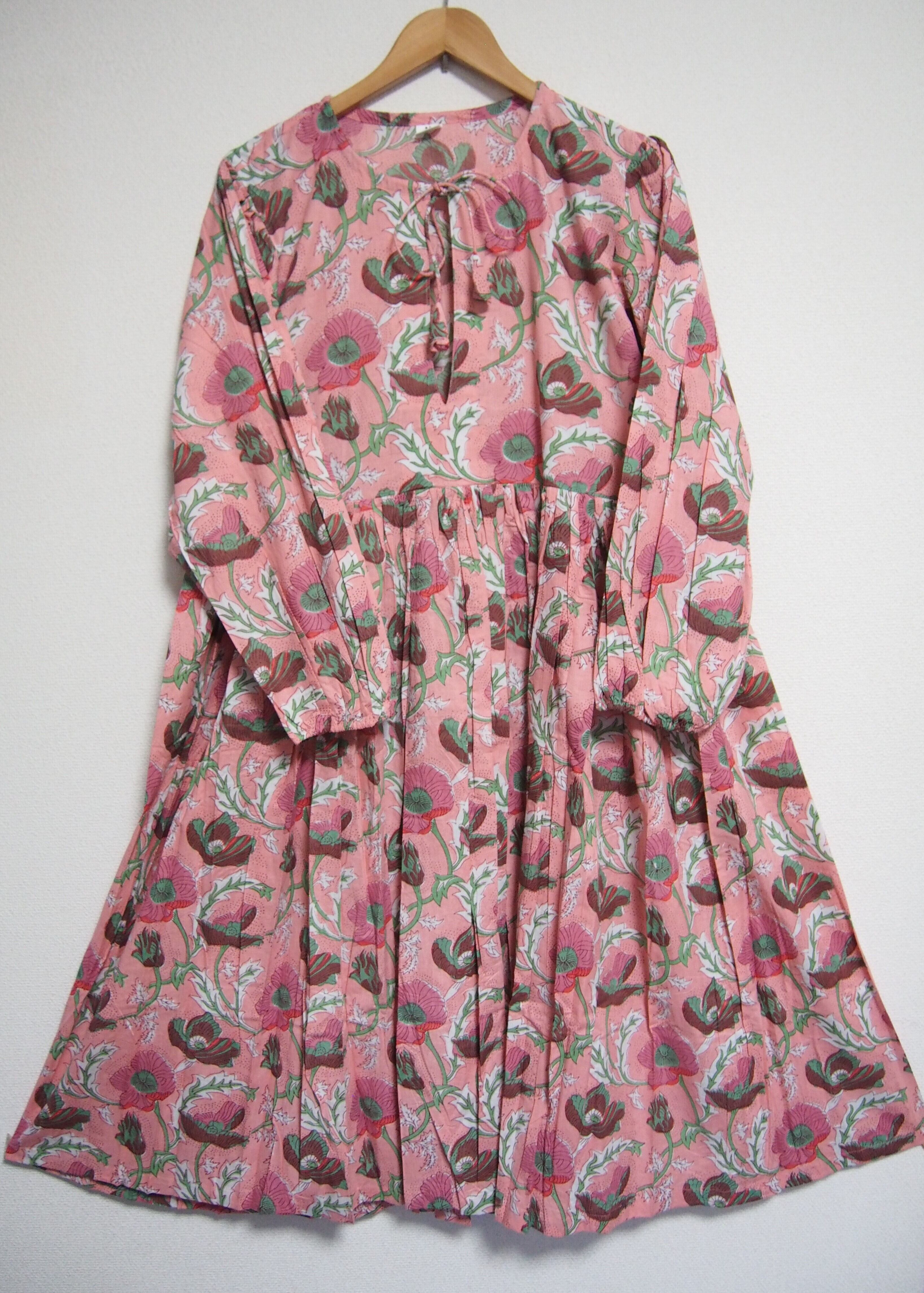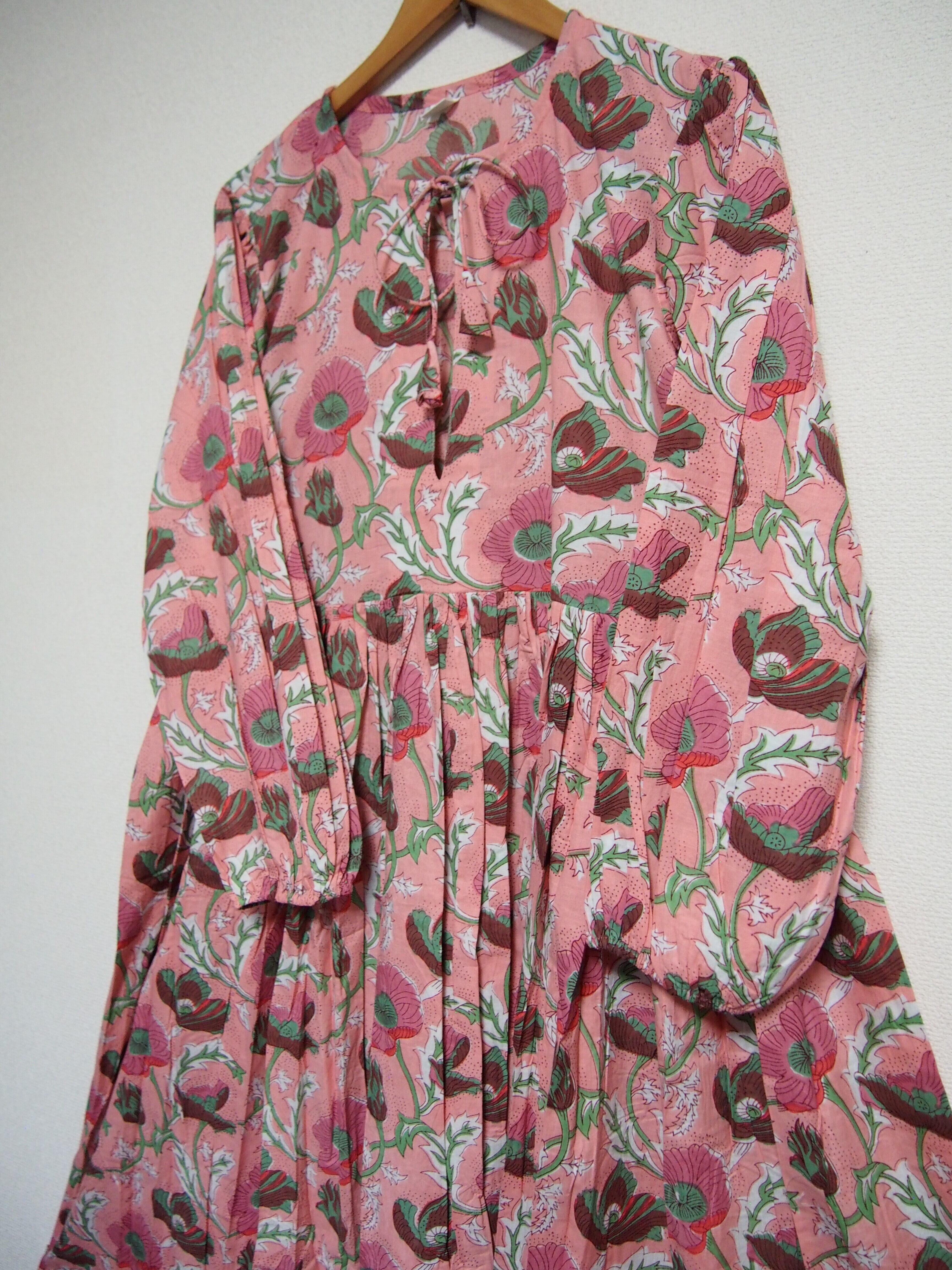 インドの伝統工芸であるハンドブロックプリントで作られたワンピースです。
