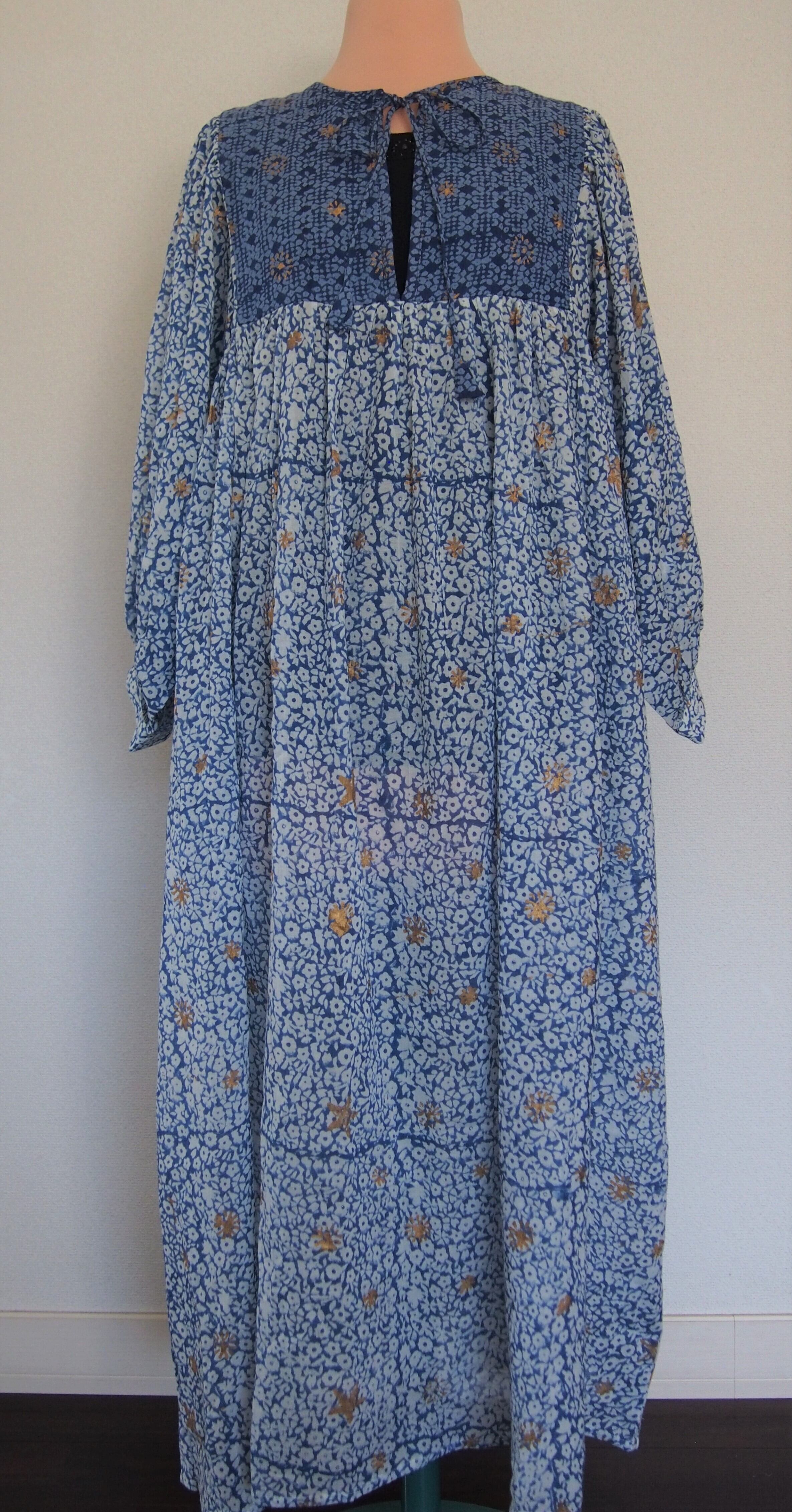 インドの伝統工芸であるハンドブロックプリントで作られたワンピースです。