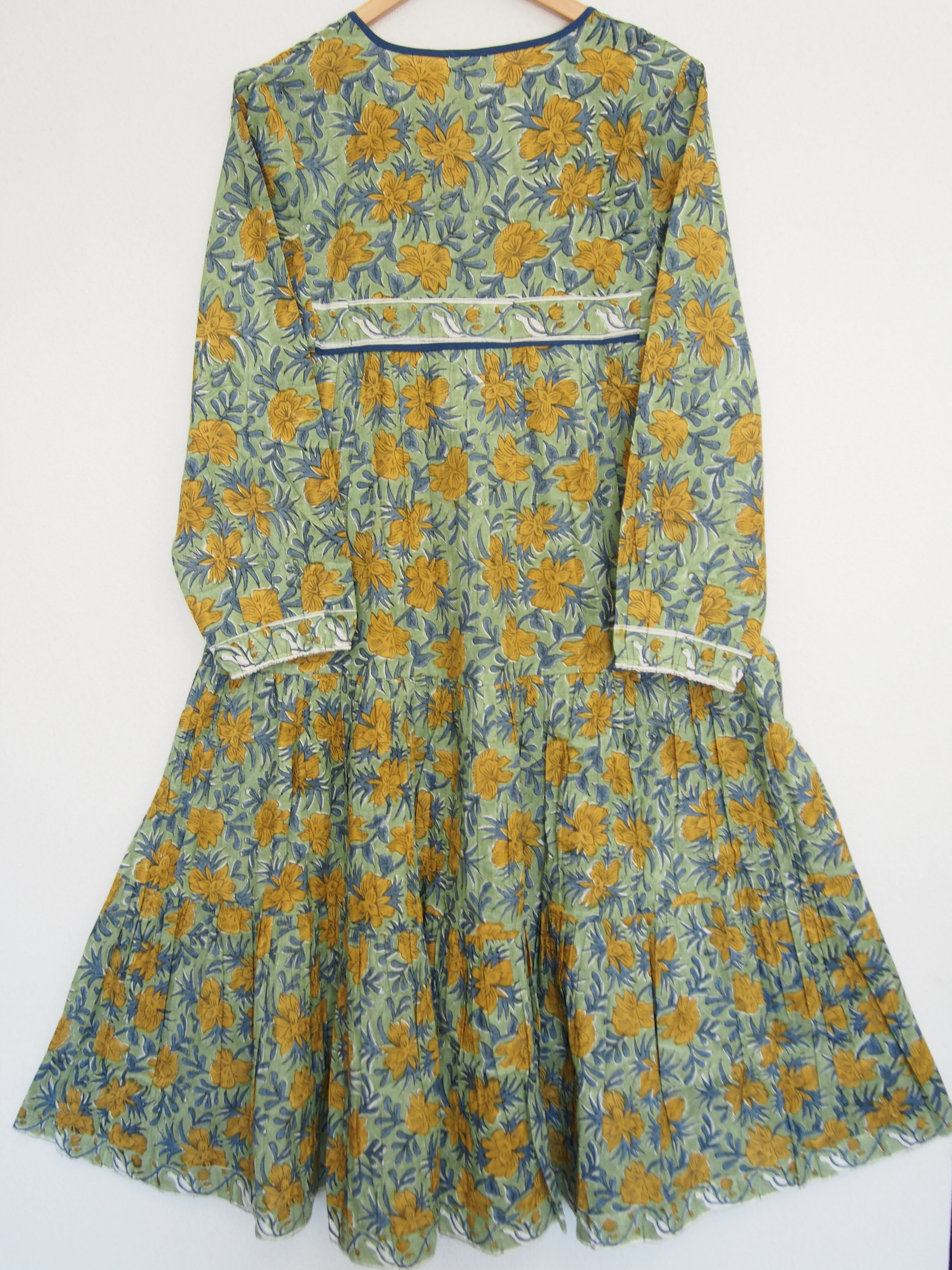 インドの伝統工芸であるハンドブロックプリントで作られたワンピースです。