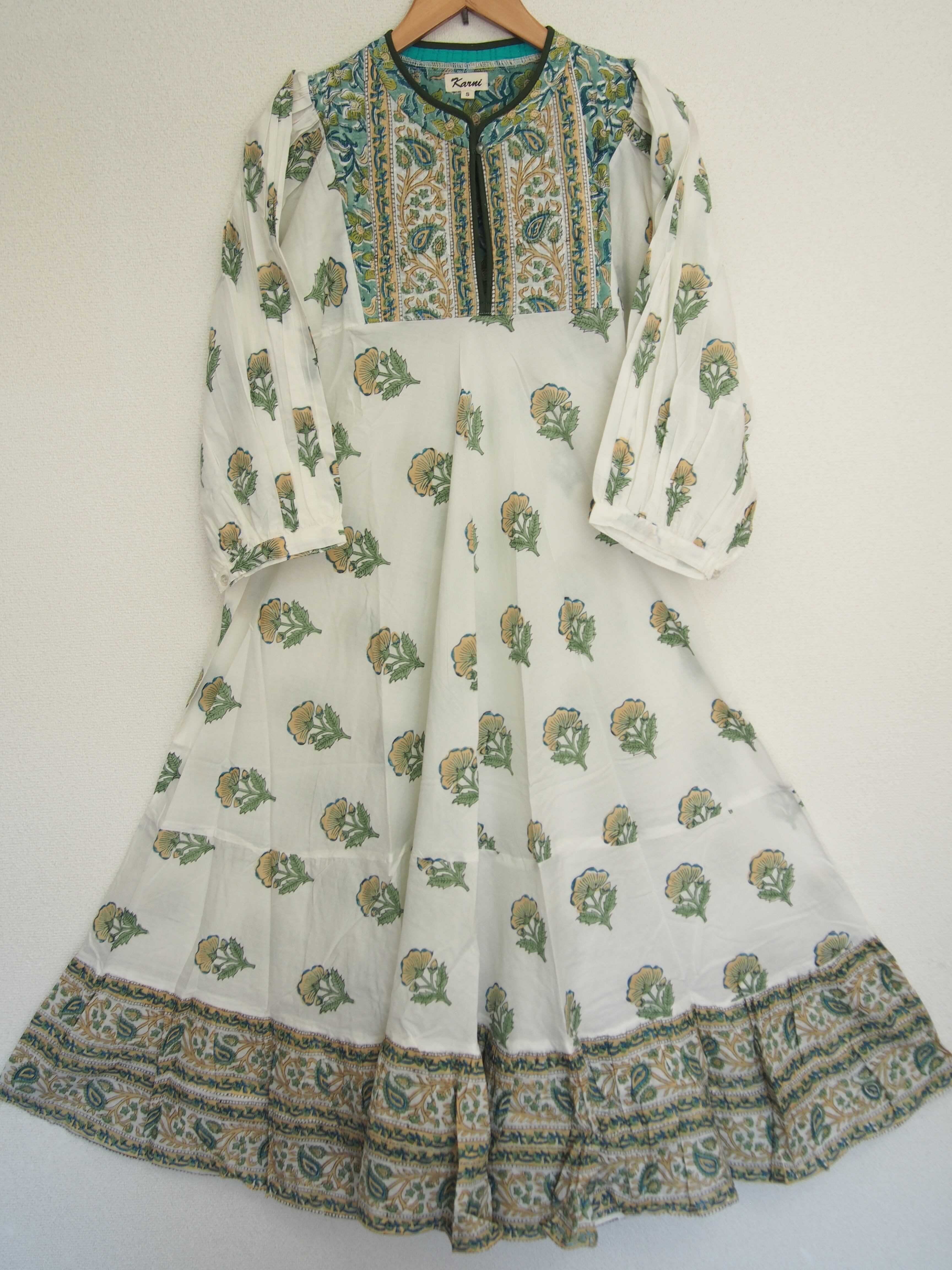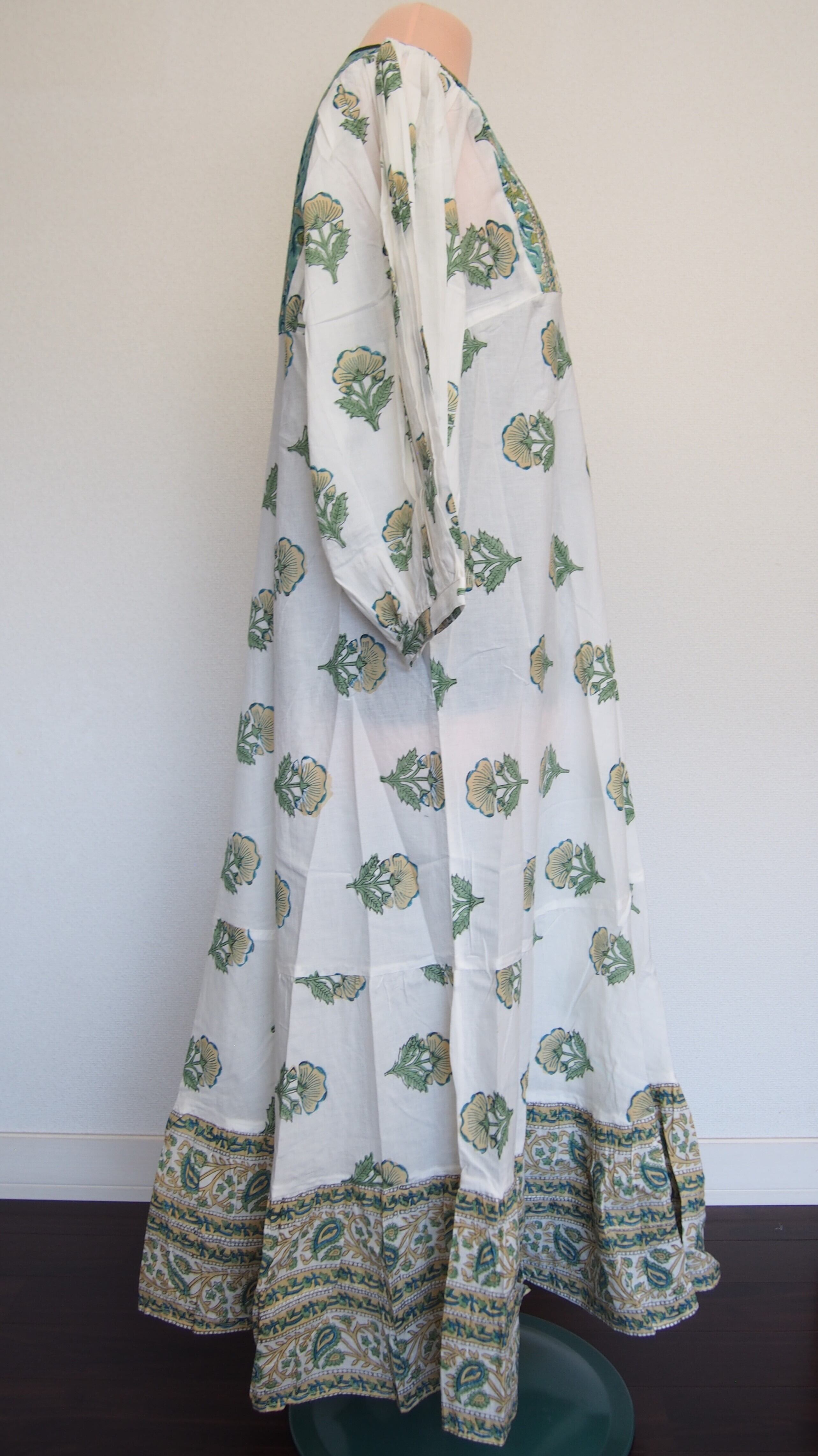 インドの伝統工芸であるハンドブロックプリントで作られたワンピースです。