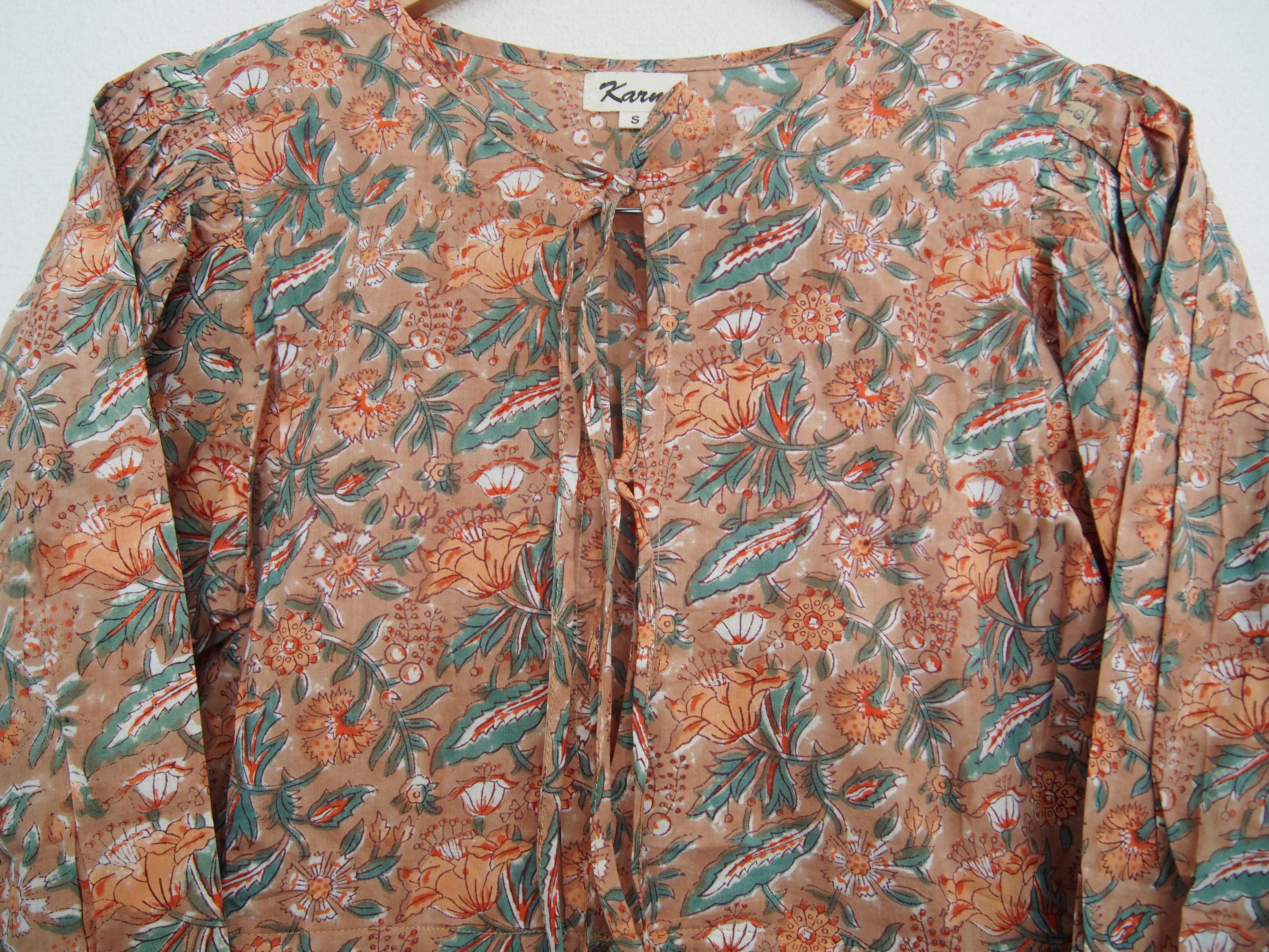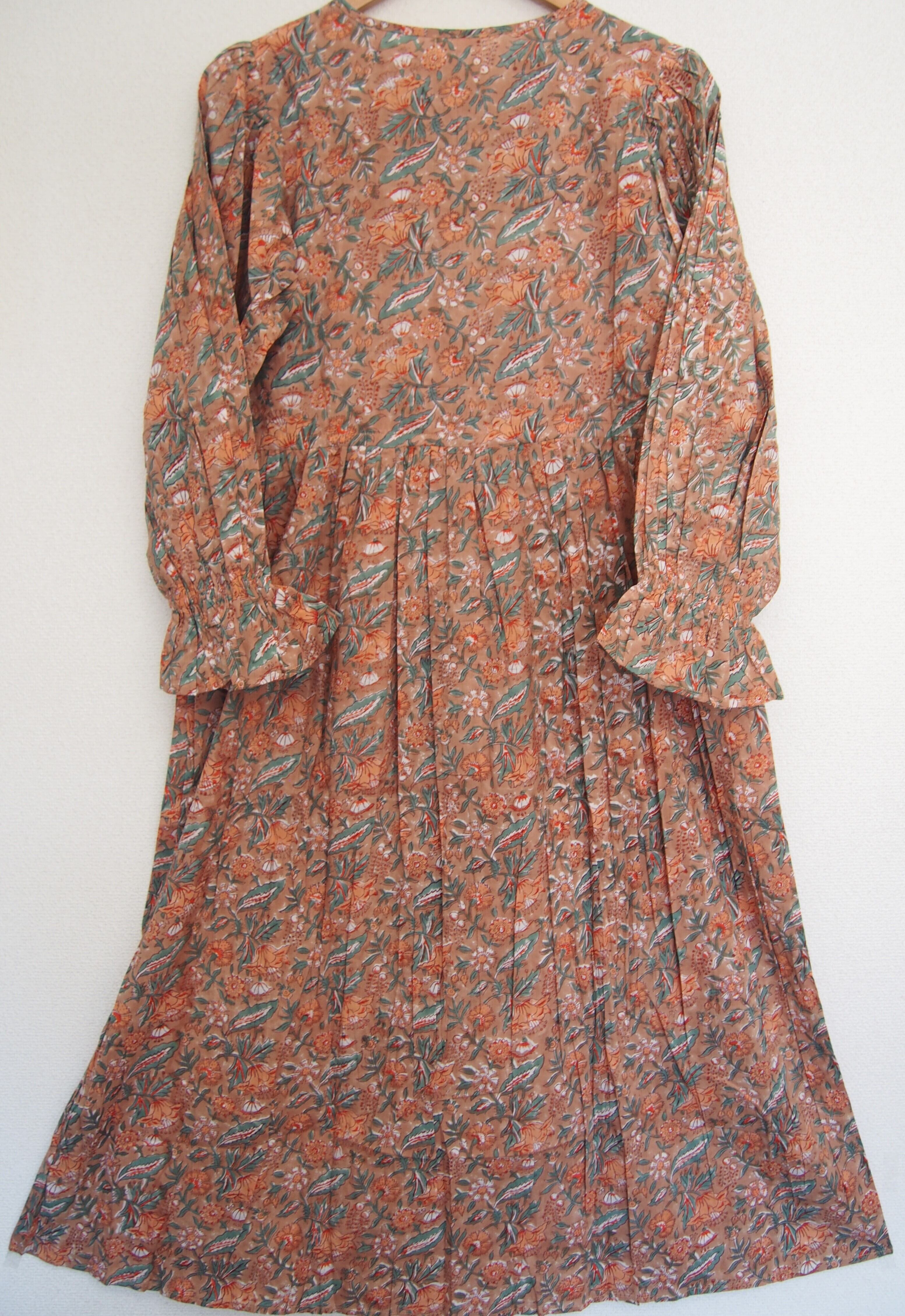 インドの伝統工芸であるハンドブロックプリントで作られたワンピースです。
