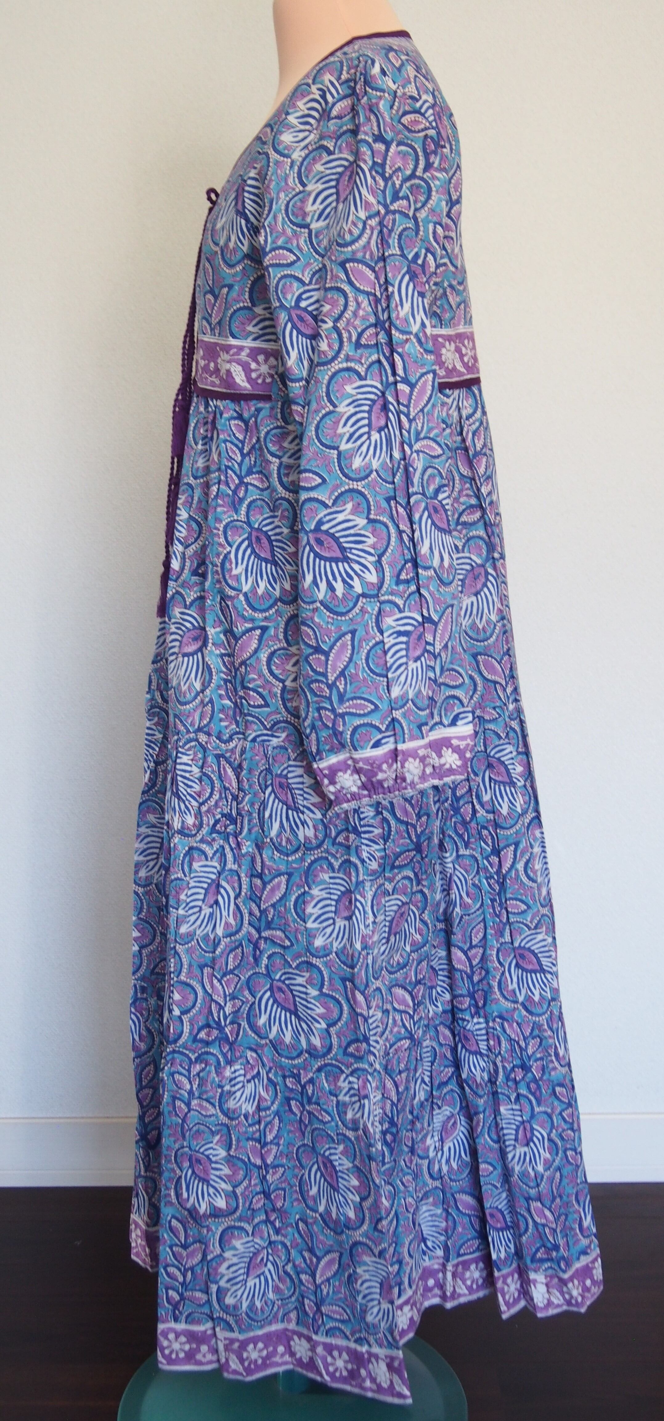 インドの伝統工芸であるハンドブロックプリントで作られたワンピースです。