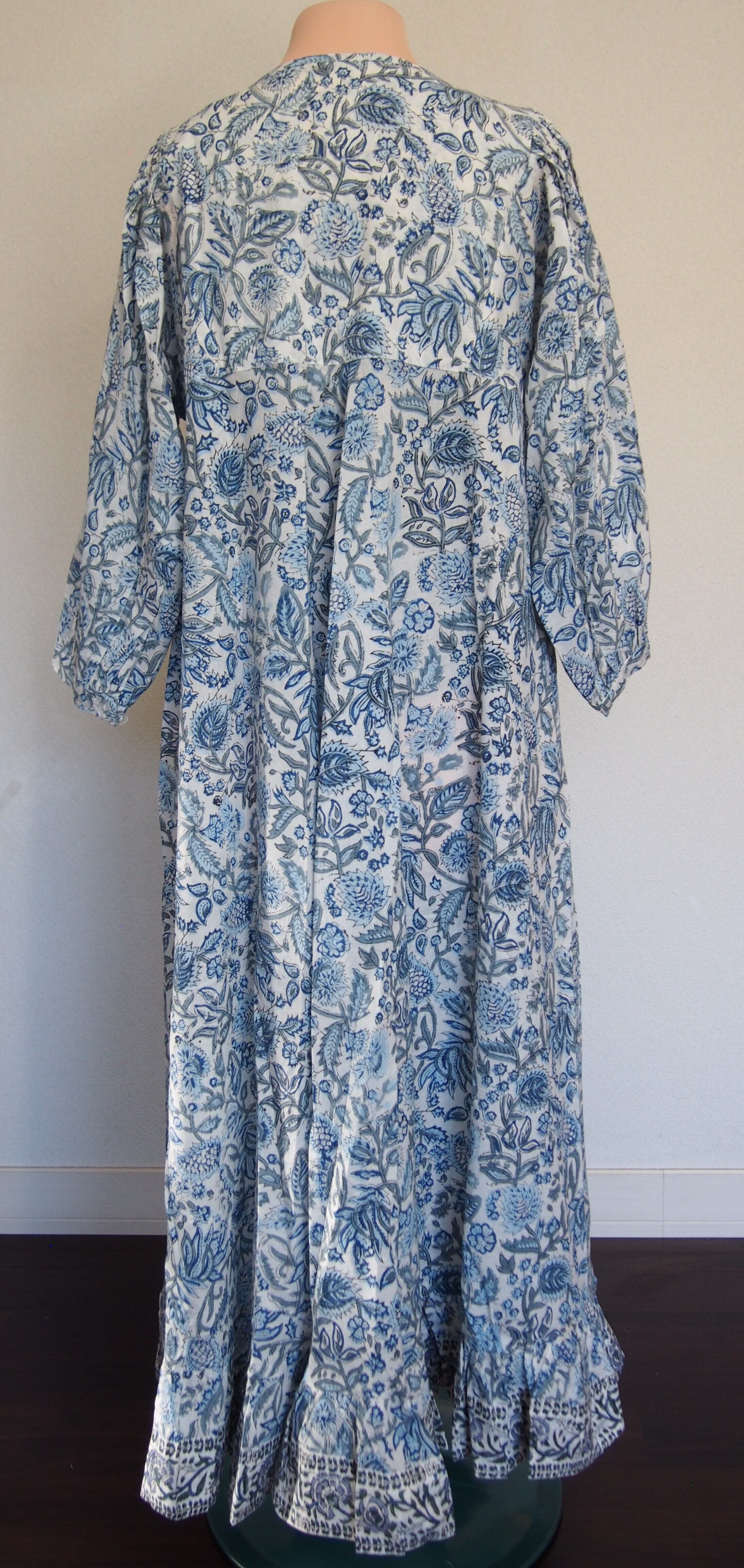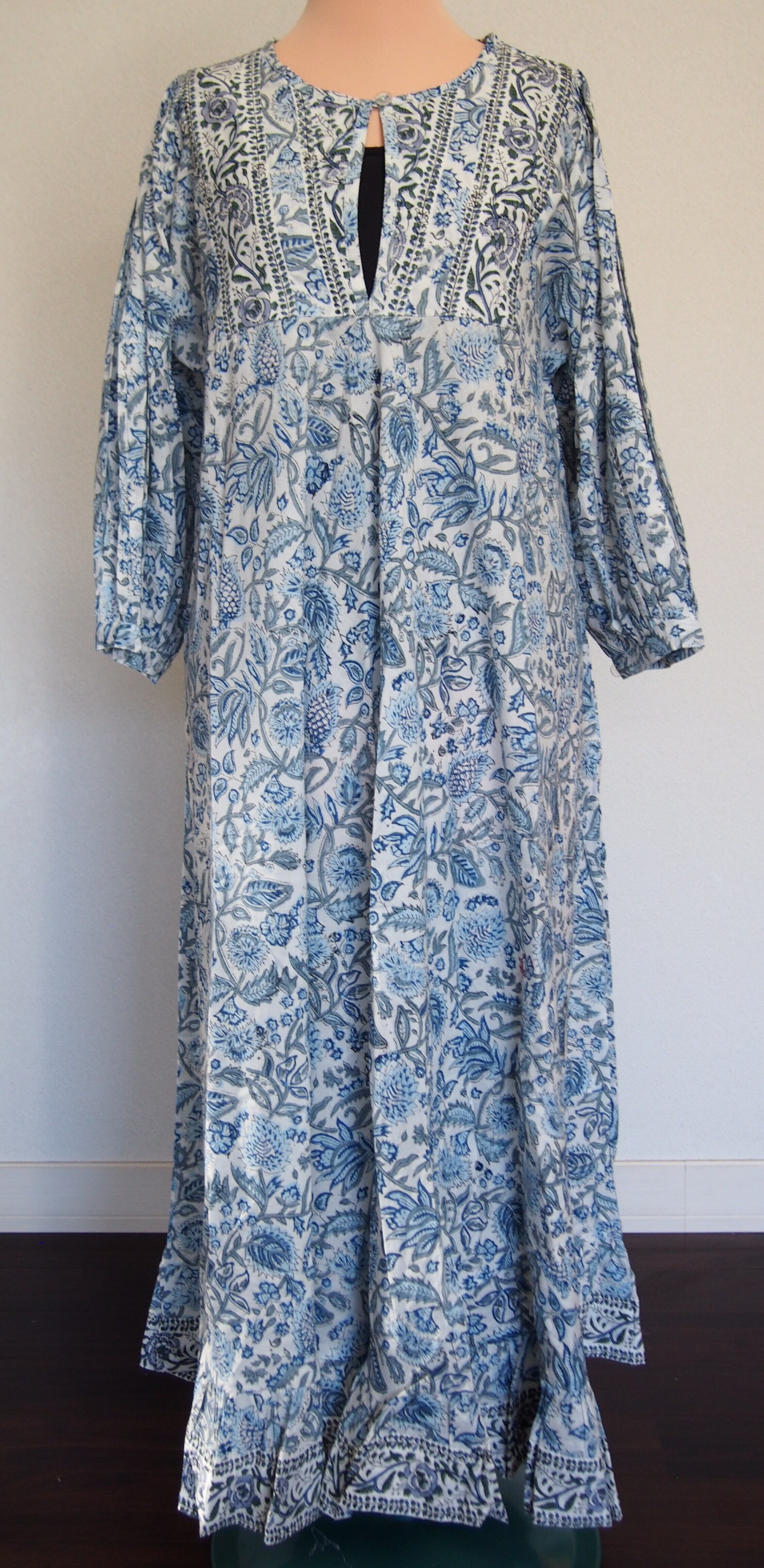 インドの伝統工芸であるハンドブロックプリントで作られたワンピースです。