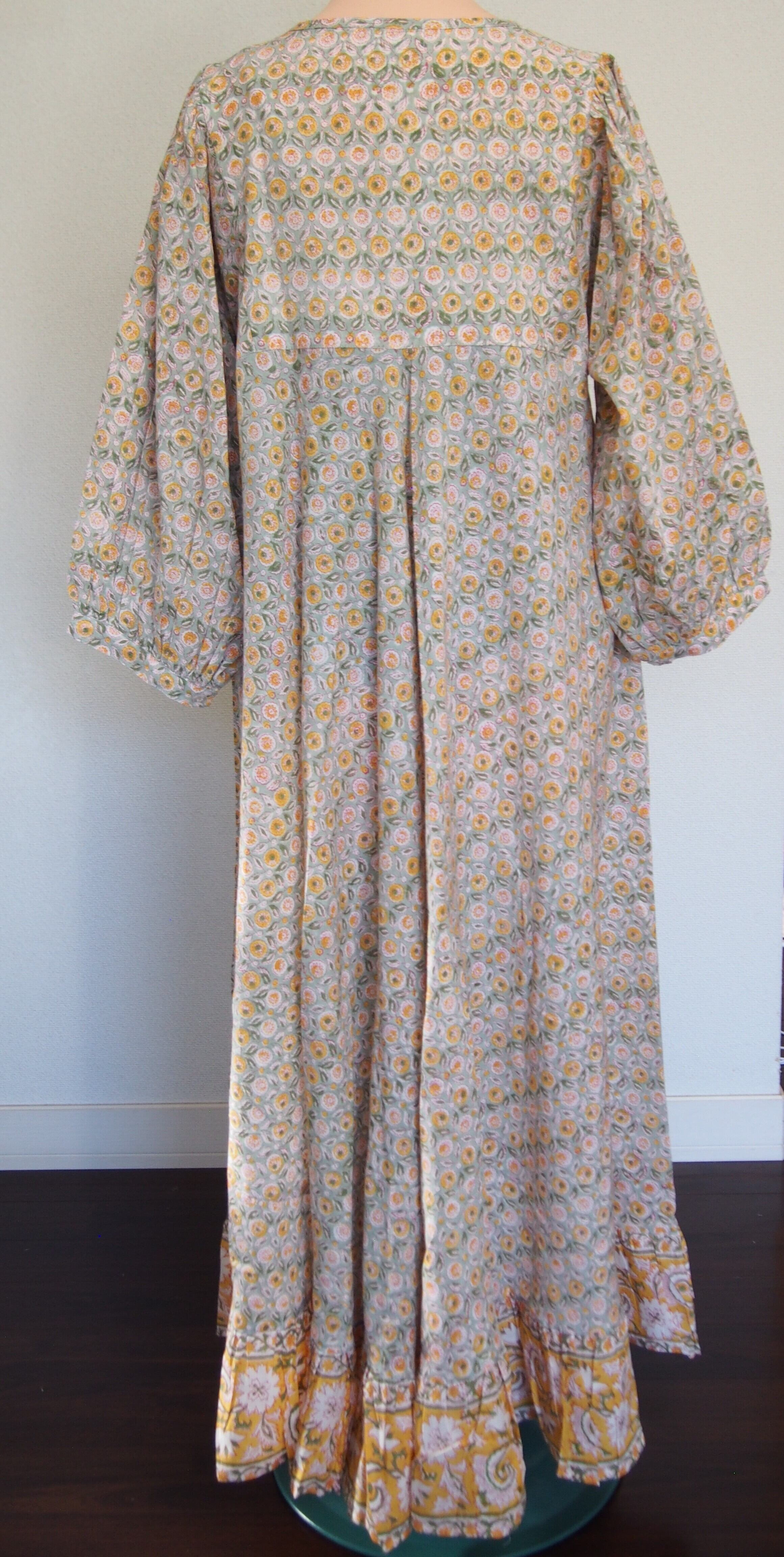 インドの伝統工芸であるハンドブロックプリントで作られたワンピースです。
