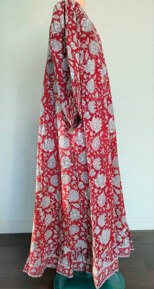 インドの伝統工芸であるハンドブロックプリントで作られたワンピースです。